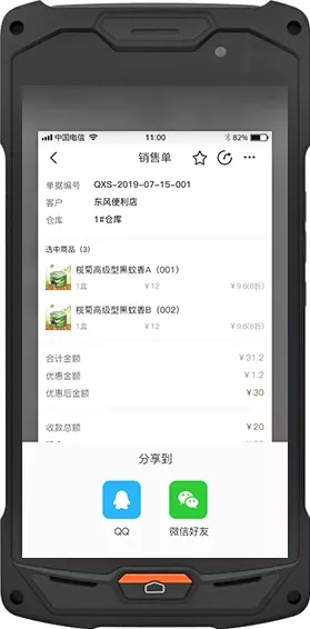 支持销售单、进货单、微信和QQ单据分享。